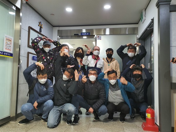 앞줄 왼쪽끝(파란티 입으셨어요)