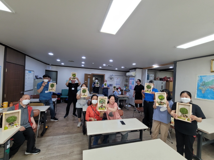원예 활동(스칸디아모스 천연이끼) 최고관리자 0 870 2023.06.27 16:32 대전서구평생학습관 장애인학습도시 선정에 따라 원예 수업이 진행되고 있어요.천연이끼 스칸디아모스를 활용하여 다양한 작품들을 만들고 수업이 종료되면 원예지도사 자격증도 취득할 수 있답니다.