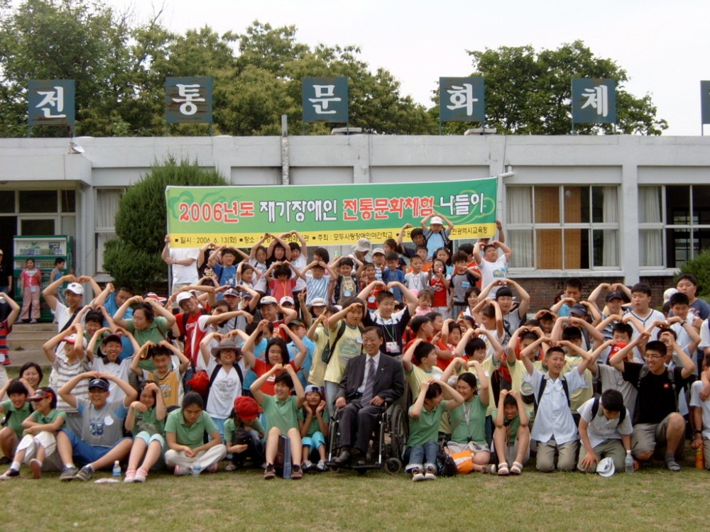제 10 회 재가장애인 세상나들이 0 936 2023.02.16 16:40 일시 2006. 6. 13 (화) 9:00 장소 청강전통문화체험학교 내용 전통생활문화체험 8종 (두부만들기, 인절미만들기, 천연염색, 목판화찍기, 제기차기, 14각주사위, 죽마타기, 비석치기) 주최 사단법인 모두사랑 인원 245명 전통생활문화체험 8종 (두부만들기, 인절미만들기, 천연염색, 목판화찍기, 제기차기, 14각주사위, 죽마타기, 비석치기)